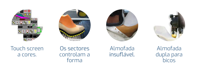 Prensa Automática programável por laminas para solas com par de almofadas de encher solas OPUNK e JOURDAN, suporte para saltos.